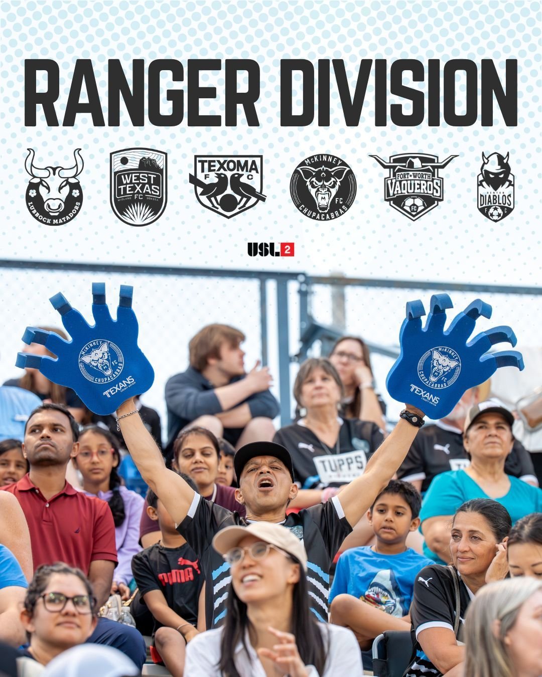West Texas, Lubbock Matadors, and Fort Worth enter the Ranger Division after competing in the National Premier Soccer League. The teams finished first, second, and fourth, respectively, in the seven-team Lone Star Conference.